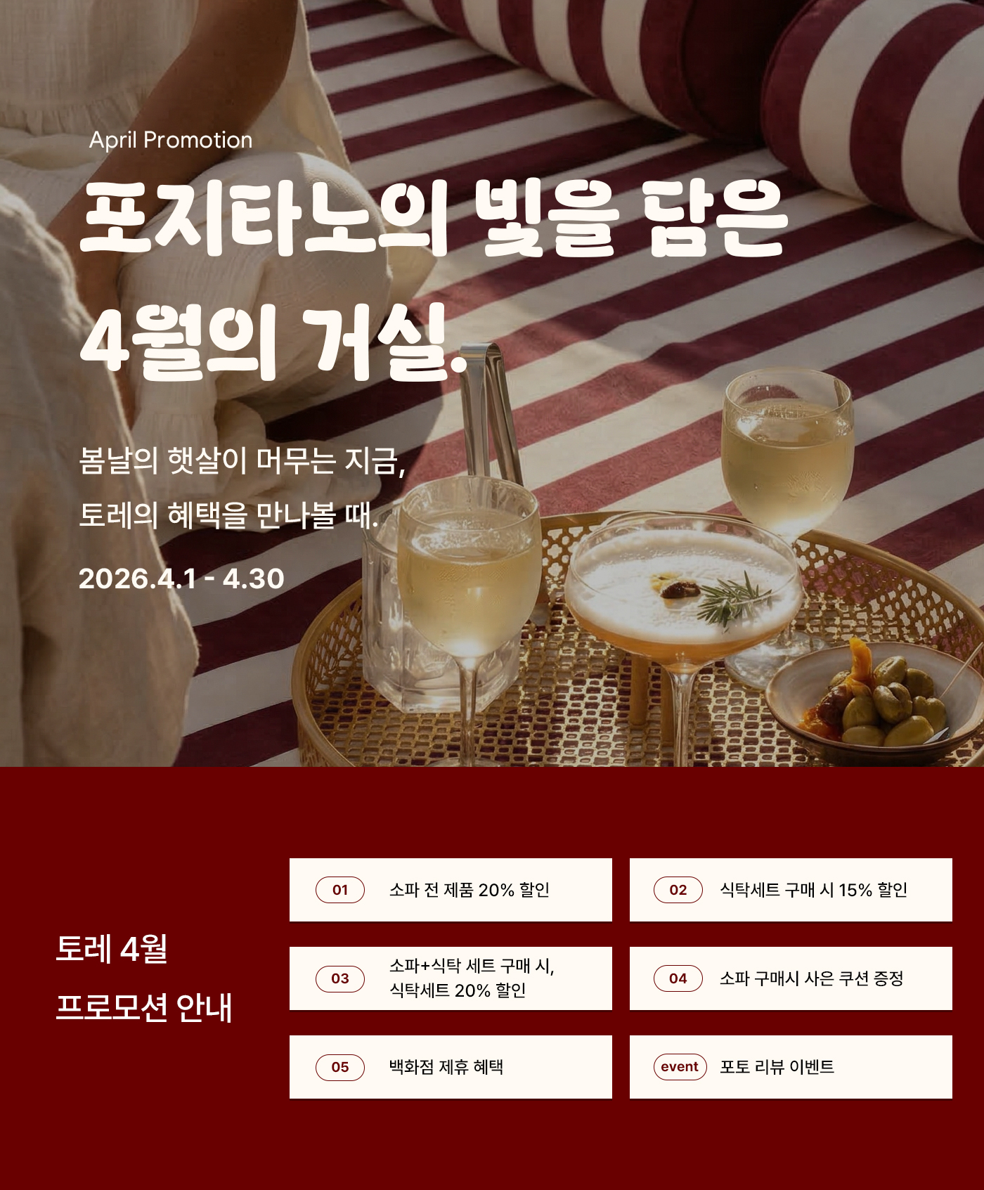 | [2026년 4월 프로모션 안내] 포지타노의 빛을 담은 4월의 거실 | |